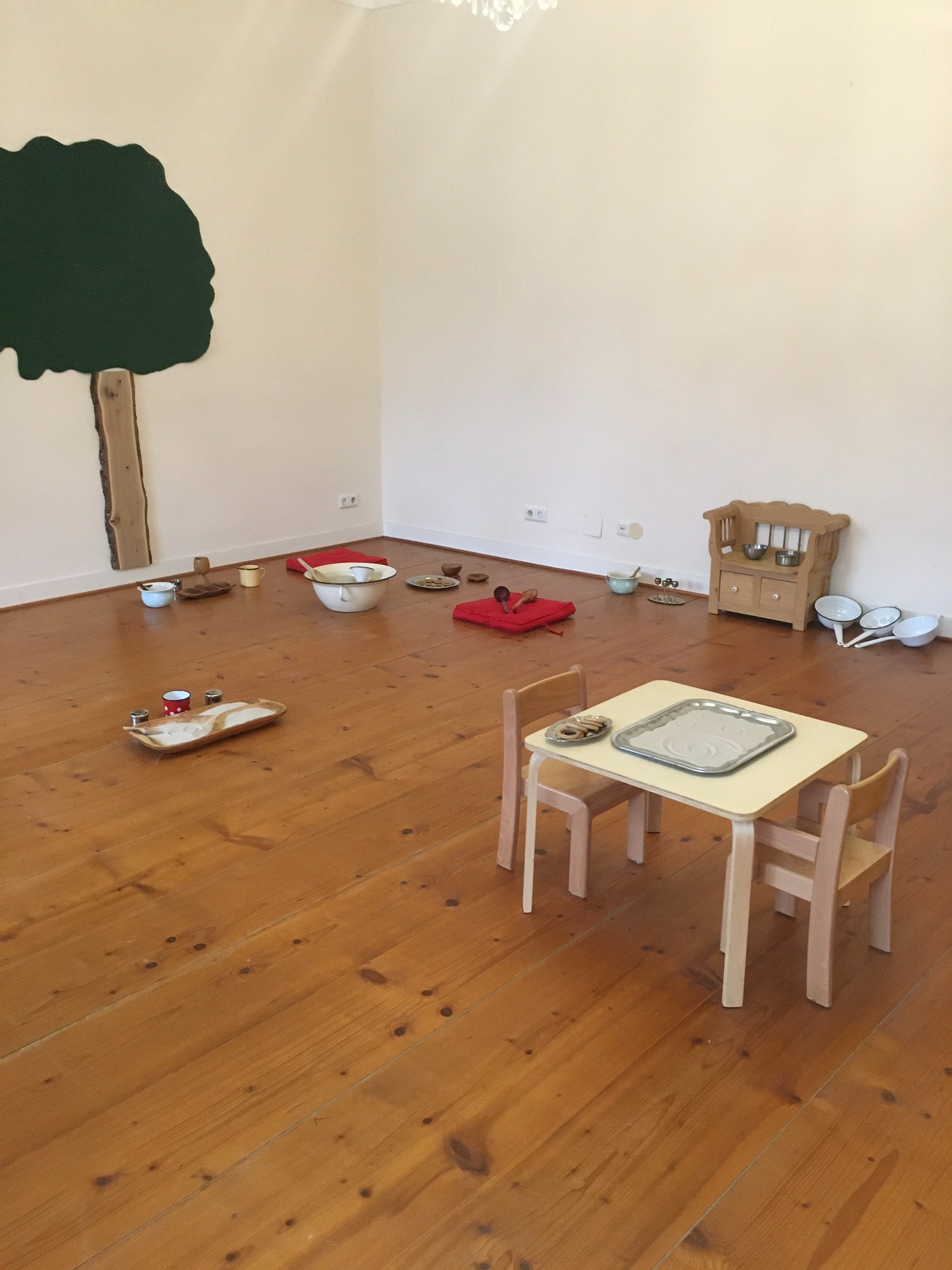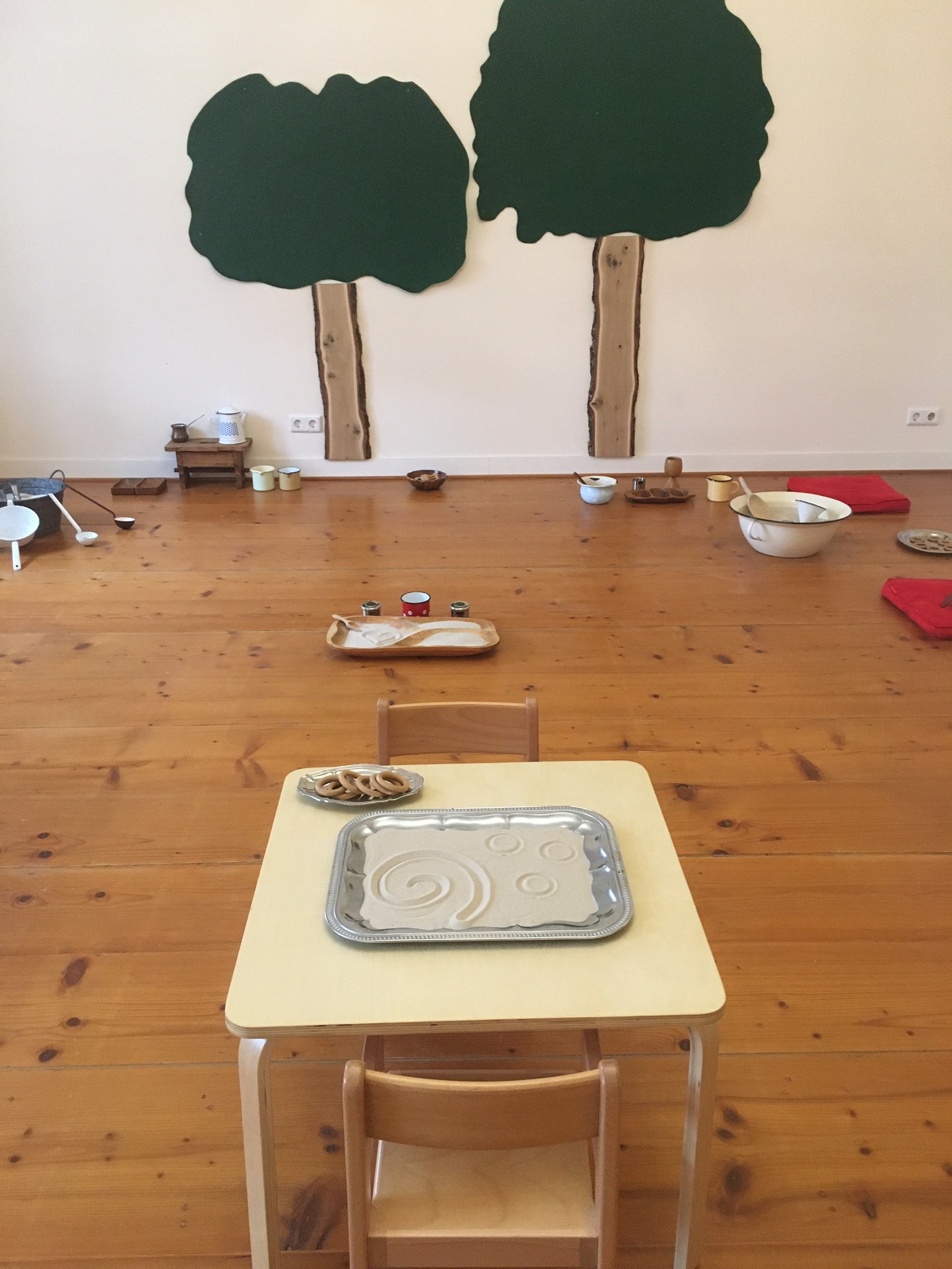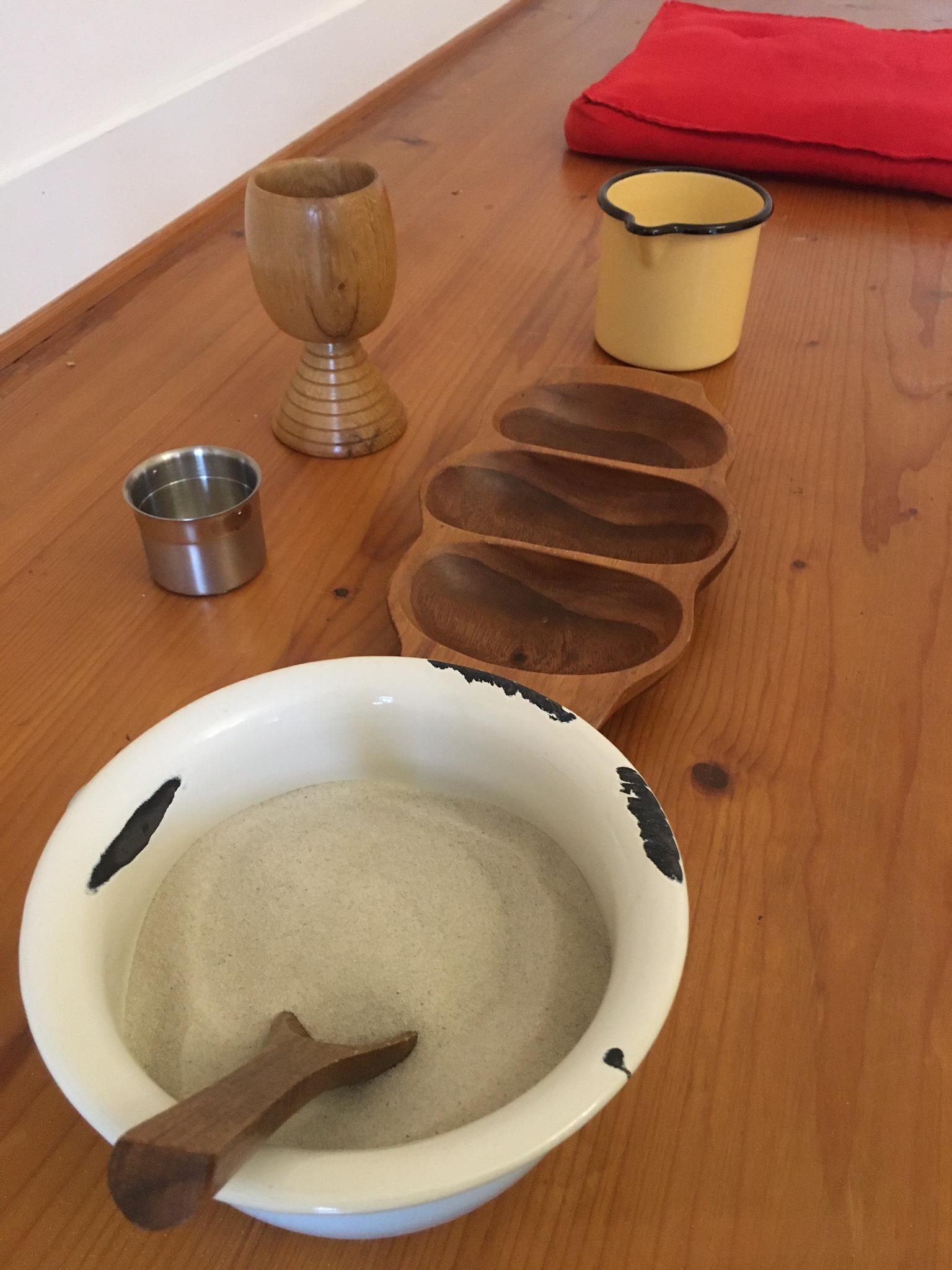 Sand in Körben, in großen Schüsseln, in kleinen Gefäßen und Wannen – mit hochwertigen Schüttmaterialien oder mit den Händen – die vorbereitete Umgebung lädt zum freien Experimentieren und