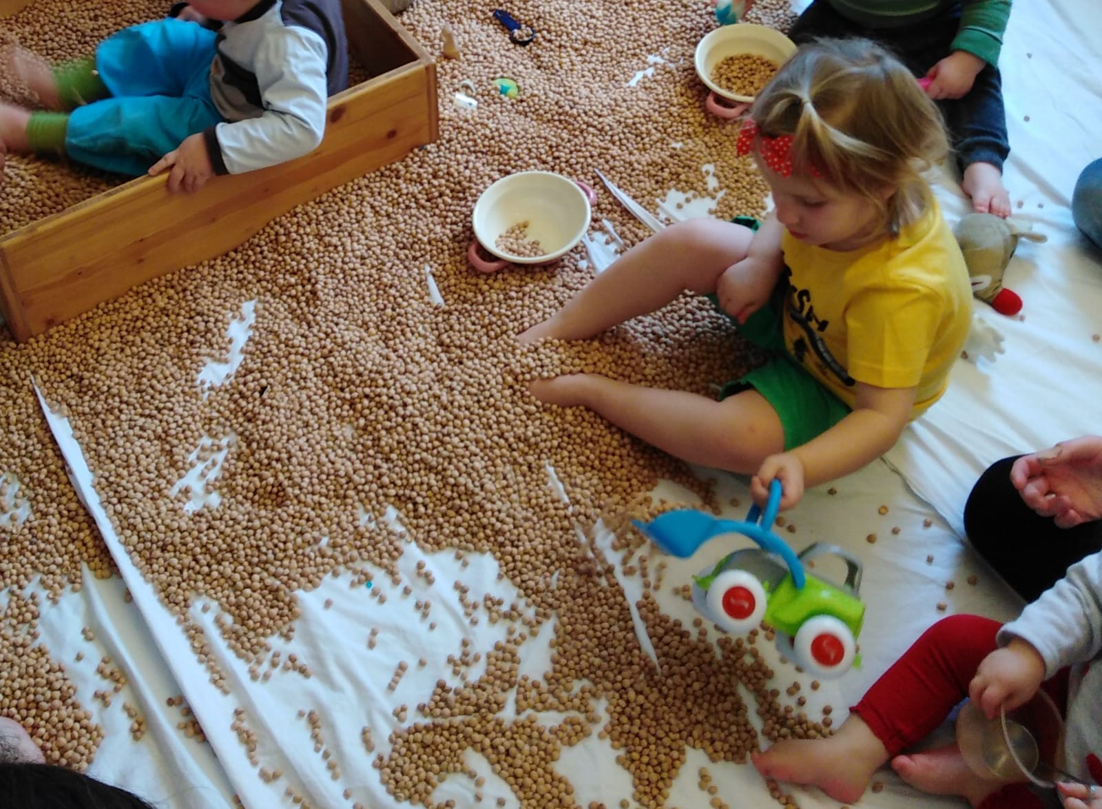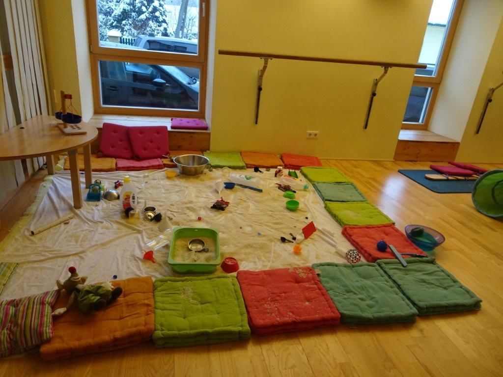Bewegungslandschaften laden zum Laufen, Springen, Rutschen, Klettern, Balancieren, Verstecken ein. Verschiedenste Materialien oftmals auch Alltagsmaterialien sind sehr begehrt bei den Kindern, da hier die Kreativität frei entfaltet werden kann und sie Gestalter ihres eigenen Tuns sind.