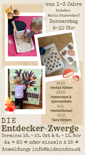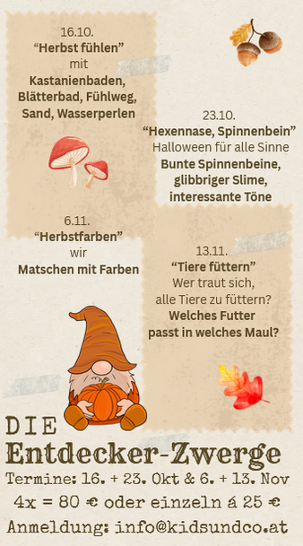 Anmeldung Einzeleinheit á 25 €: www.eventfrog.at/entdecker-zwerge