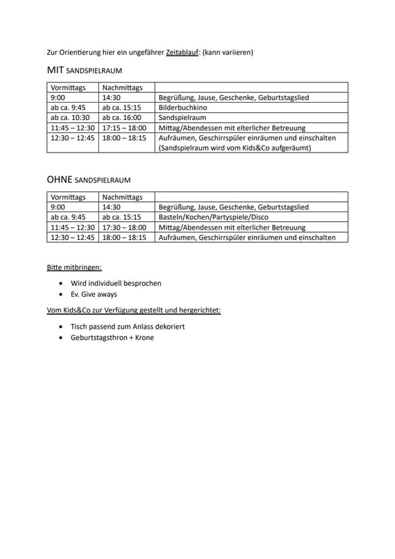 Die genaue Kinderanzahl kann bis 2 Wochen vor der Feier übermittelt werden und ist dann bindend.