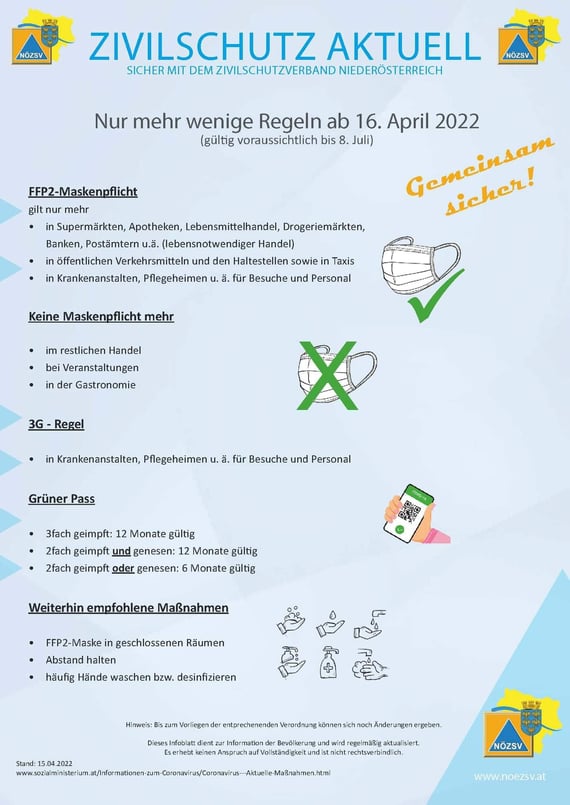 Neue Regelungen ab 16. April 2022