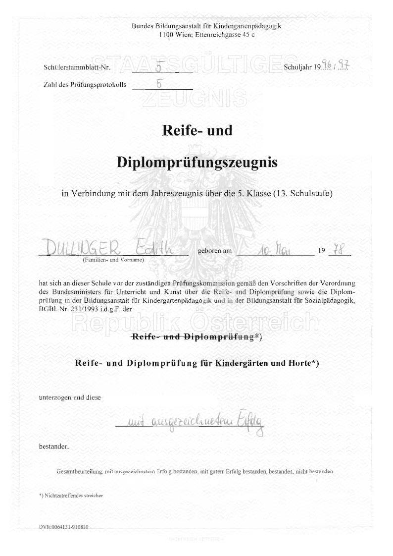 ausgebildete Früherzieherin, Kindergärtnerin und Horterzieherin